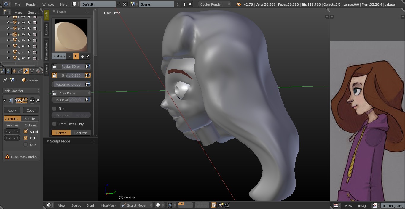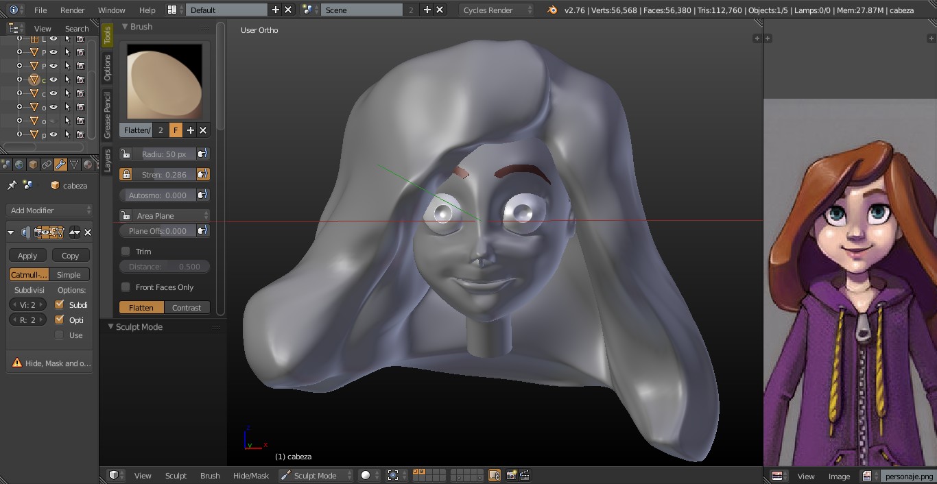 Dejo por aquí una capturas de la cara de frente y de lado y de las manos, así como el blend. Seguramente el personaje no sea perfecto y tenga mil cosas que arreglar, pero igual le puede servir a alguien para destriparlo y ver cosas.