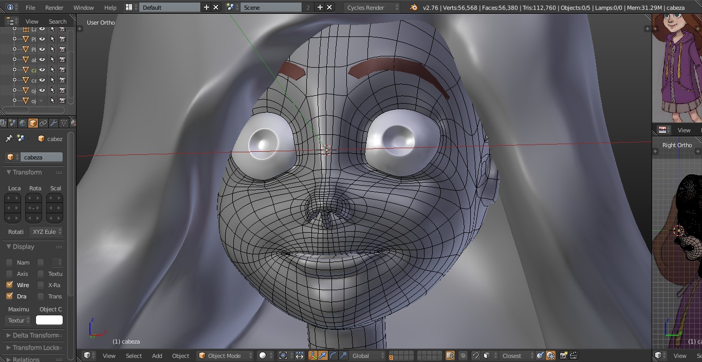 A raíz de eso, esta tarde pondré un par de capturas de un personaje que hice para que se vea la topología que usan para el tema de la animación (o al menos la que nos dieron en el curso) el personaje en cuestión es este.