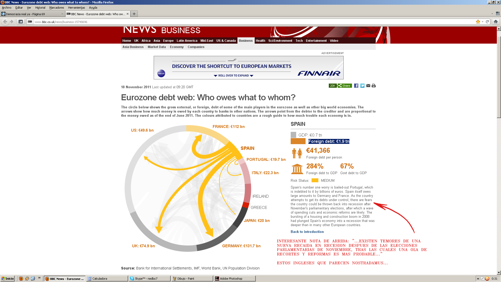 Una de cultura general. ¿quién debe a quién? . Por otro lado, el hecho de que la Psoe tenga más de un 25% de los votantes, me produce tanta inquietud como desazón. Está claro que éste país no tiene remedio.