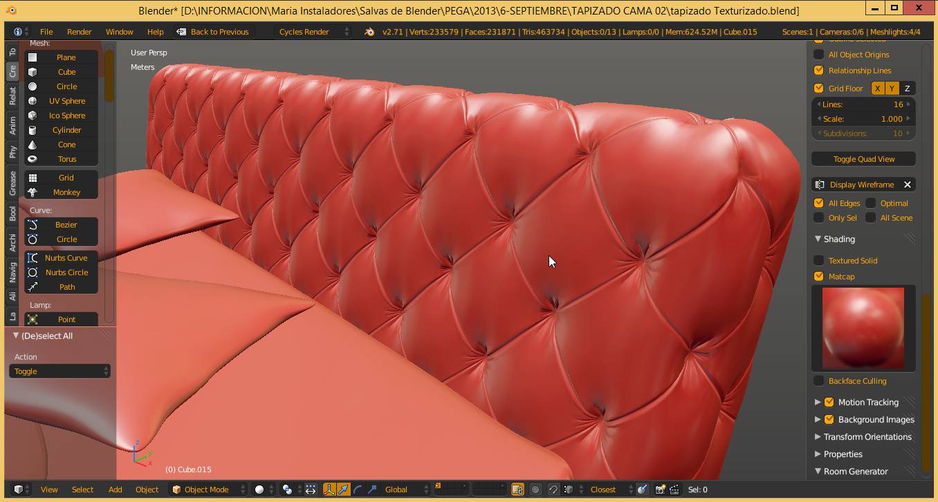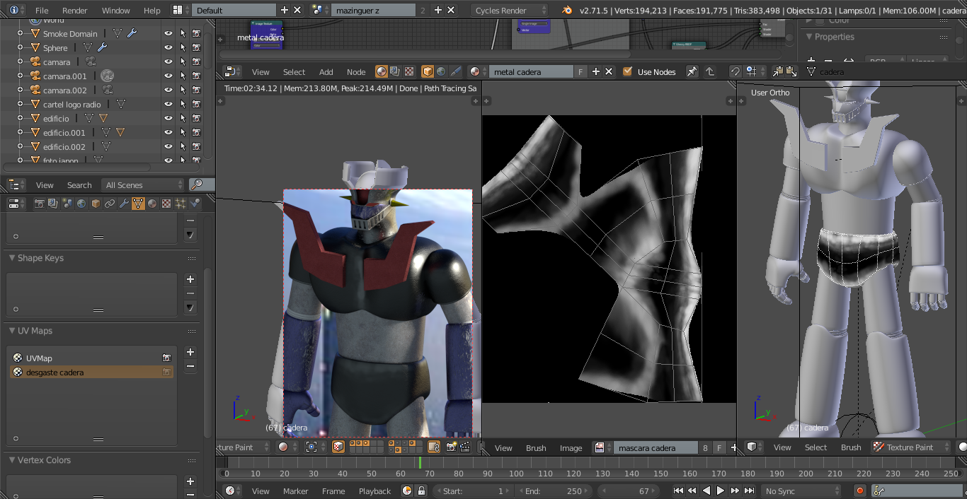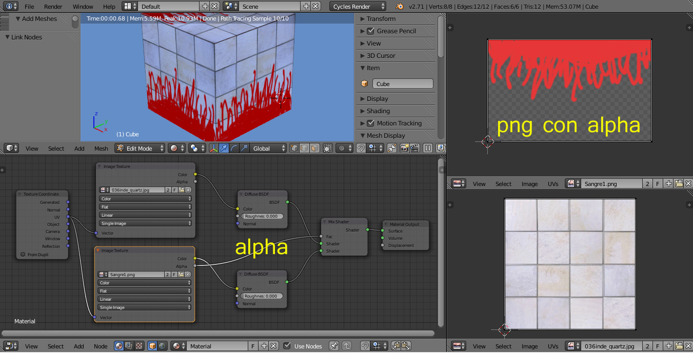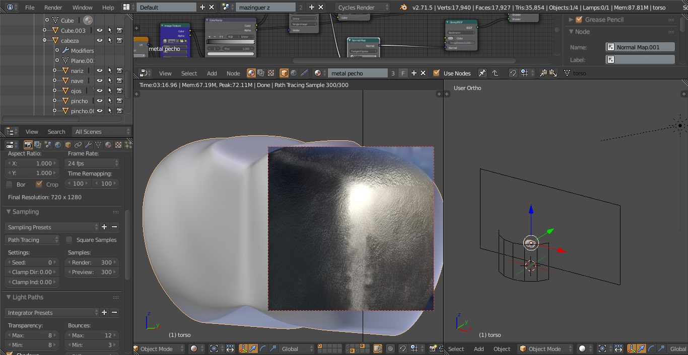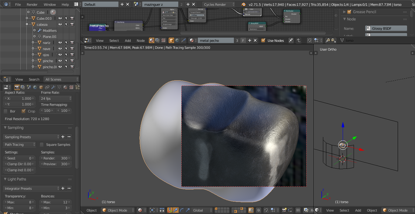 Estoy muy de acuerdo contigo en cuanto a lo del desenfoque. Yo también quería qué empezara más lejos, porque como tú bien dices se pierden detalles (y con lo que me costó hacer todo al final sólo se ve nítido el centro de la imagen). Pero es que no sé cómo controlar el alcance del desenfoque, me explico: el punto de enfoque lo puse en la tumba de la calavera, y ya el desenfoque te lo hace el programa, puedes regular el grado de desenfoque, pero no el radio de acción. Todo esto si hago el desenfoque directamente en el panel de opciones de la cámara, sin nodos. Con nodos sí sé controlar esto (con el Defocus me refiero), pero no puedo usar nodos de composición porque se me cuelga el ordenador. Si alguien sabe cómo hacer esto sin nodos.
