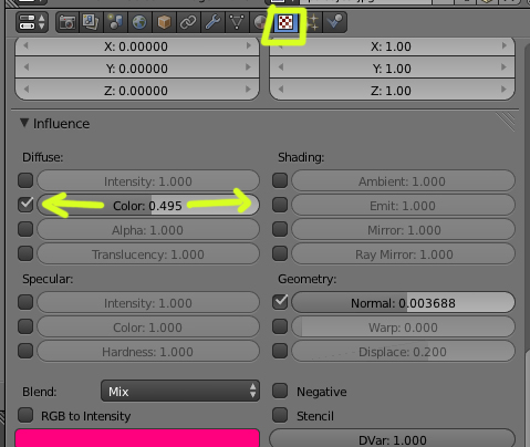 O sea, se trata de poner de color un color negro (o azul si buscas efecto color cielo) y con la barra de Color se va mezclando el darle más valor a la imagen o al color (Diffuse).