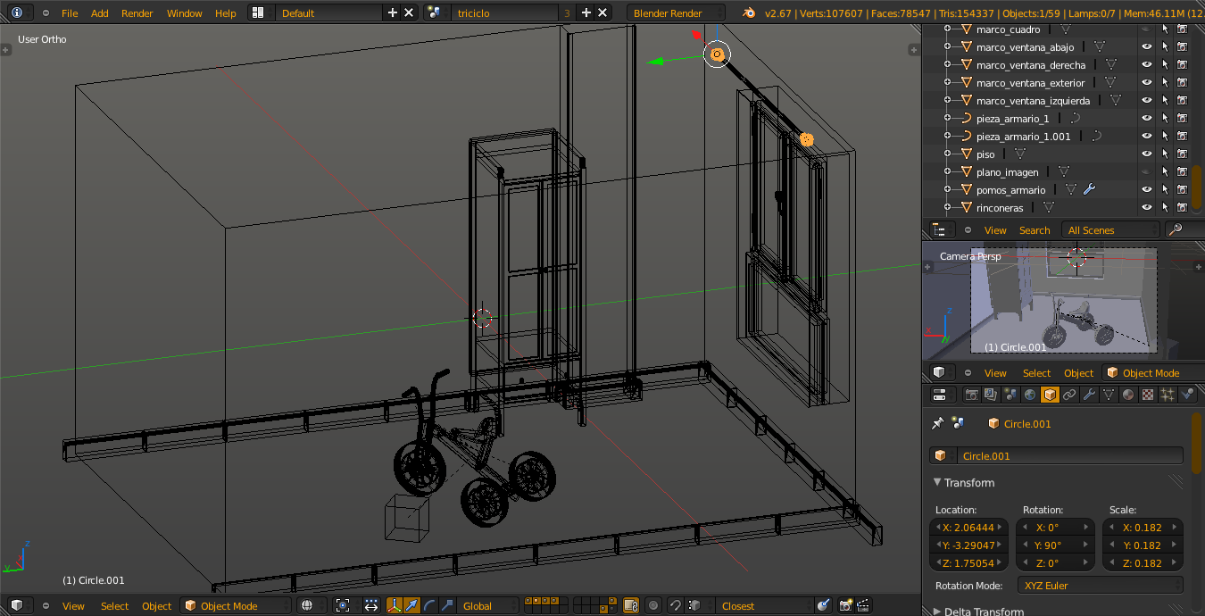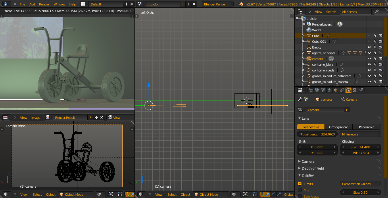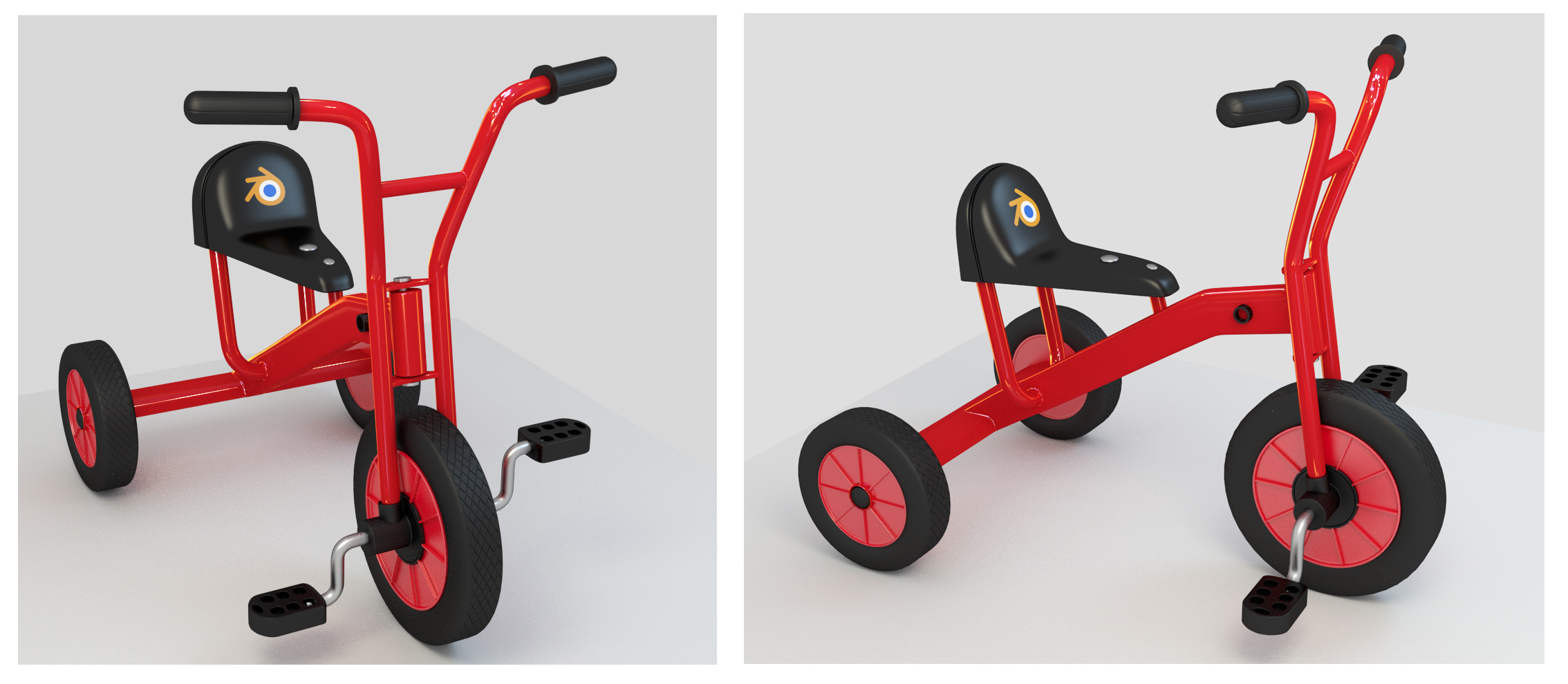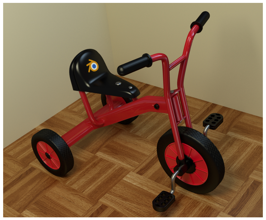 Yo ya dejaría por aquí el modelado del triciclo. Solo me queda subirme a el y todavía Blender no trae el addon oportuno.