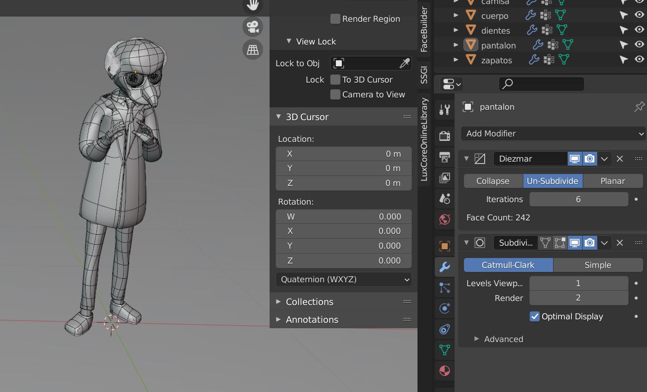 Gracias Solimán, lo de los pantalones es porque sin querer le di a aplicar al modificador Subdivision Surface y para cuando me di cuenta ya era demasiado tarde para volver atrás.