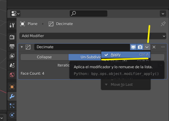 Entiendo, le aplico el decimate para volver a estar como si no le hubiese aplicado el Subdivision Surface y luego ya le pongo el Subdivision Surface.