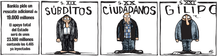Es gracioso lo que comentan estos, Pit y todos los que van de apolíticos chulas de bareto, me acuerdo de la que montó cuando en el 2010 Zapatero tiró por tierra toda la ideología del Psoe subiendo impuestos, iva, retrasando la edad de jubilación, y lo hizo porque la EU le dijo o lo haces o te intervenimos, y ahora que no quiere ser intervenido echa pestes de Zapatero, bueno en este caso de Rubalcaba, que está más callado que una puta.