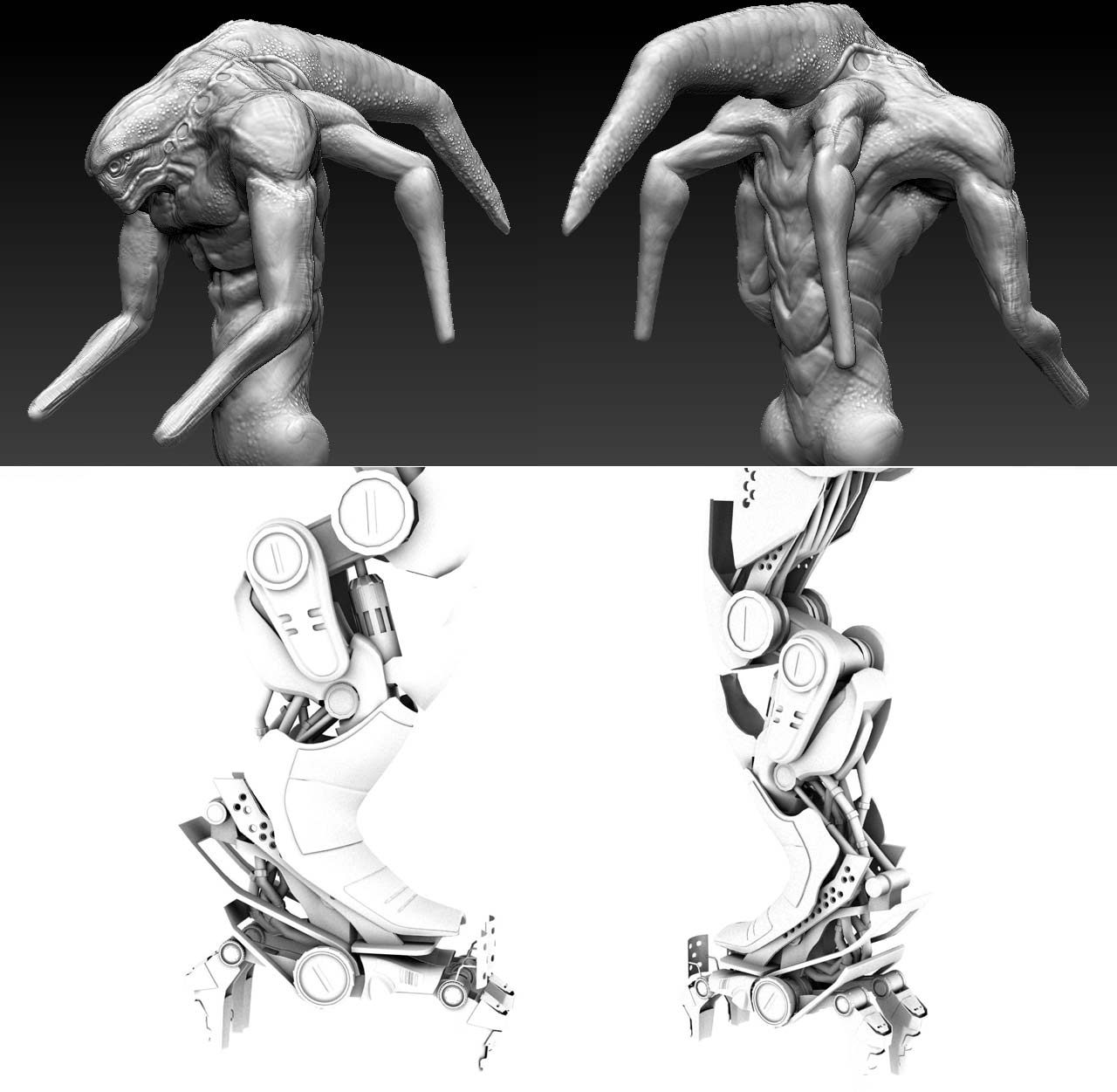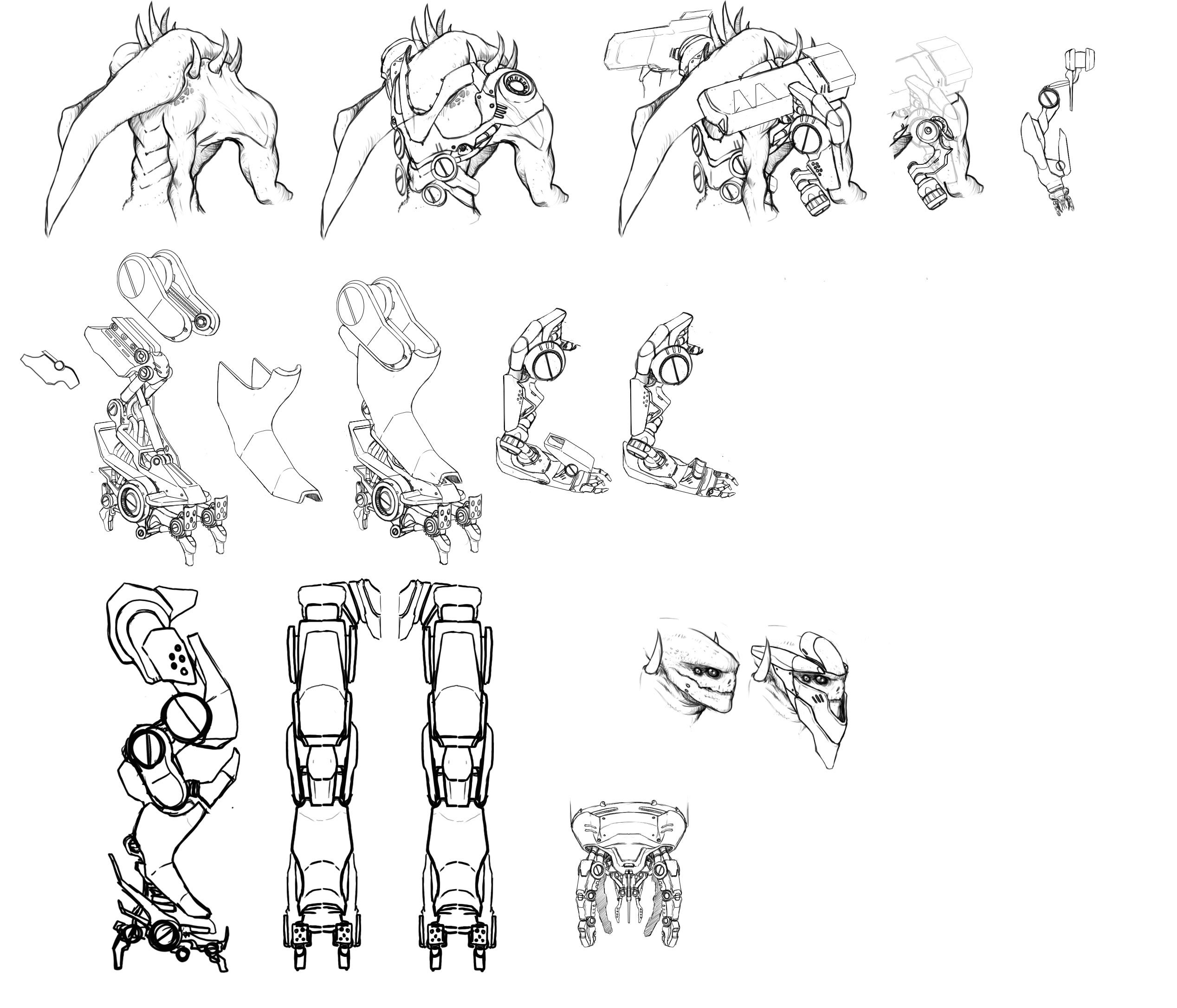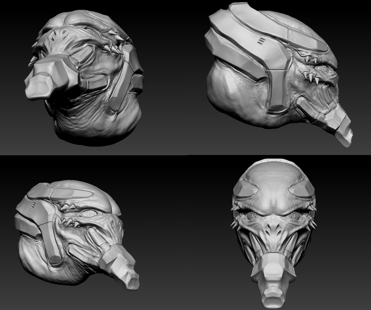 Básicamente lo único que no forma parte del concept a blanco y negro, es la cabeza, la cual he rediseñado e incluyo el concept y el Sculpt sin refinar de ZBrush justo abajo, así que, bueno, pues aquí está.
