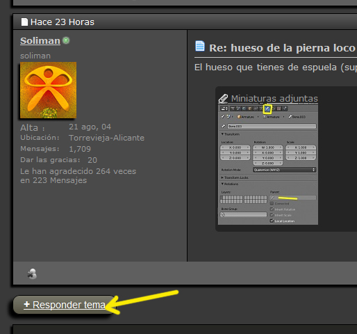 Hola, un problema breve, y creo que bastante común. Después de hacer la armadura correctamente, los huesos de la pierna me quedan en este orden (de arriba a abajo): fémur, tibia, hueso de tacon, hueso de pie y otro hueso en la punta del pie. Todos están correctamente emparentados para poder ponerlo de puntillas si lo necesita. El problema es que muevo la pierna usando la cinemática inversa en la tibia mediante un hueso de control colocado como una espuela en el pie. Y la pierna responde bien, hasta llegar a una cierta altura en que se vuelve loca y da bandazos o hace piruetas. He visto en algunos videotutoriales que una de las soluciones recomendadas para que esto no ocurra es que las rodillas estén ligeramente flexionadas, pero en mi caso no funciona. Gracias por la ayuda.