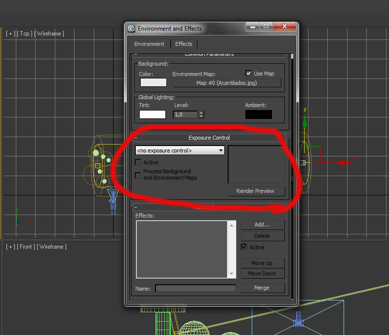 Como veis a mí me queda todo como más difuminado o algo así, en las imágenes del tutorial queda más nítido todo. Lo he revisado varias veces y los valores están bien puestos, no sé si tendrá algo que ver que mi versión de max sea la 2012. He trasteado un poco con los valores, pero al no tener ni idea de iluminación y efectos no consigo nada.