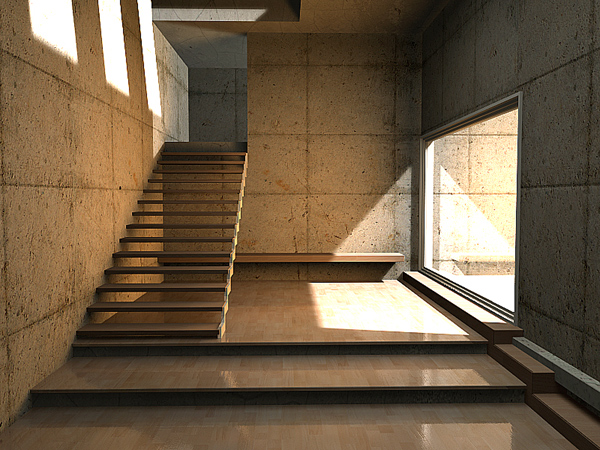 Si. Estoy intentando simular espacios reales y es uno de los ejemplos de Maxwell render. Lo que estoy probando es a iluminar sin utilizar radiosidad.