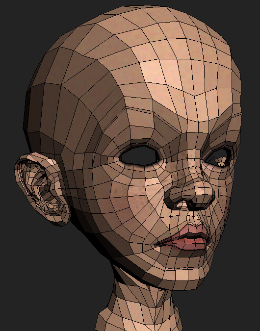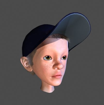 Mola mucho el shader. Y el modelo y todo en general. Las pecas que le has puesto creo que le quedan genial. En cuanto a lo de cabezón, quizá mejoraría poniéndole el cuello un poco más atrás de la cabeza, pues parece que el peso lo tenga mal distribuido, demasiado atrás la cabeza.