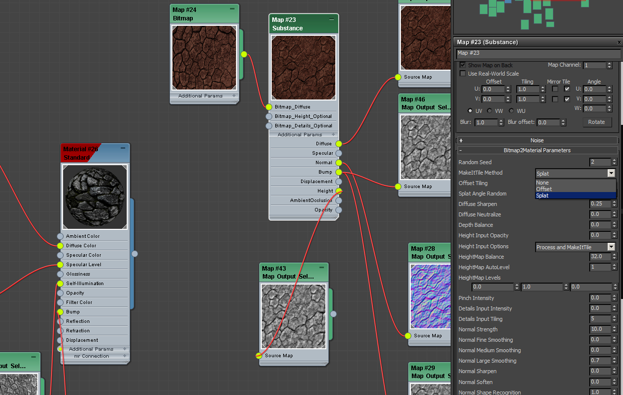 Bitmap2material es un software desarrollado por allegorithmic que permite a los usuarios generar materiales para suelo de baldosas, que incluyen mapas normales, mapas de altura, mapas especulares, todos ellos obtenidos a partir de una imagen de mapa de bits (generalmente una fotografía).