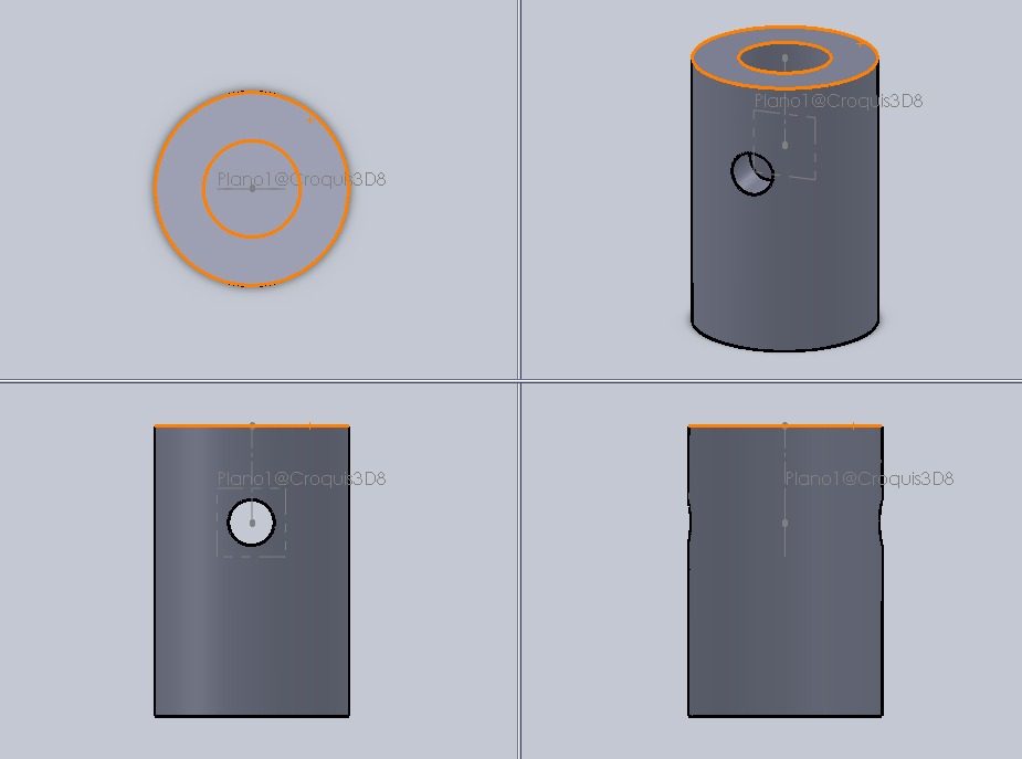 Hola a todos. Soy nuevo en este foro, y espero mi duda esté en el área correcta. Agradeceré grandemente que me ayuden con este problema, estoy dibujando un buje en Solidworks, y quiero realizar pasos de rosca al buje, pero en una cara curva, en la imagen es justo dónde están los agujeros pequeños), sé bien que para realizar la rosca he de utilizar la función hélice y que para ello necesito tener un círculo plano (pero, mi círculo es curvo por estar en la cara curva, valga la redundancia). He intentado realizarlo con la función convertir entidades, pero nada más no me sale. Por favor ayuda, como podría hacerlo, paso por paso. Saludos a todos.
