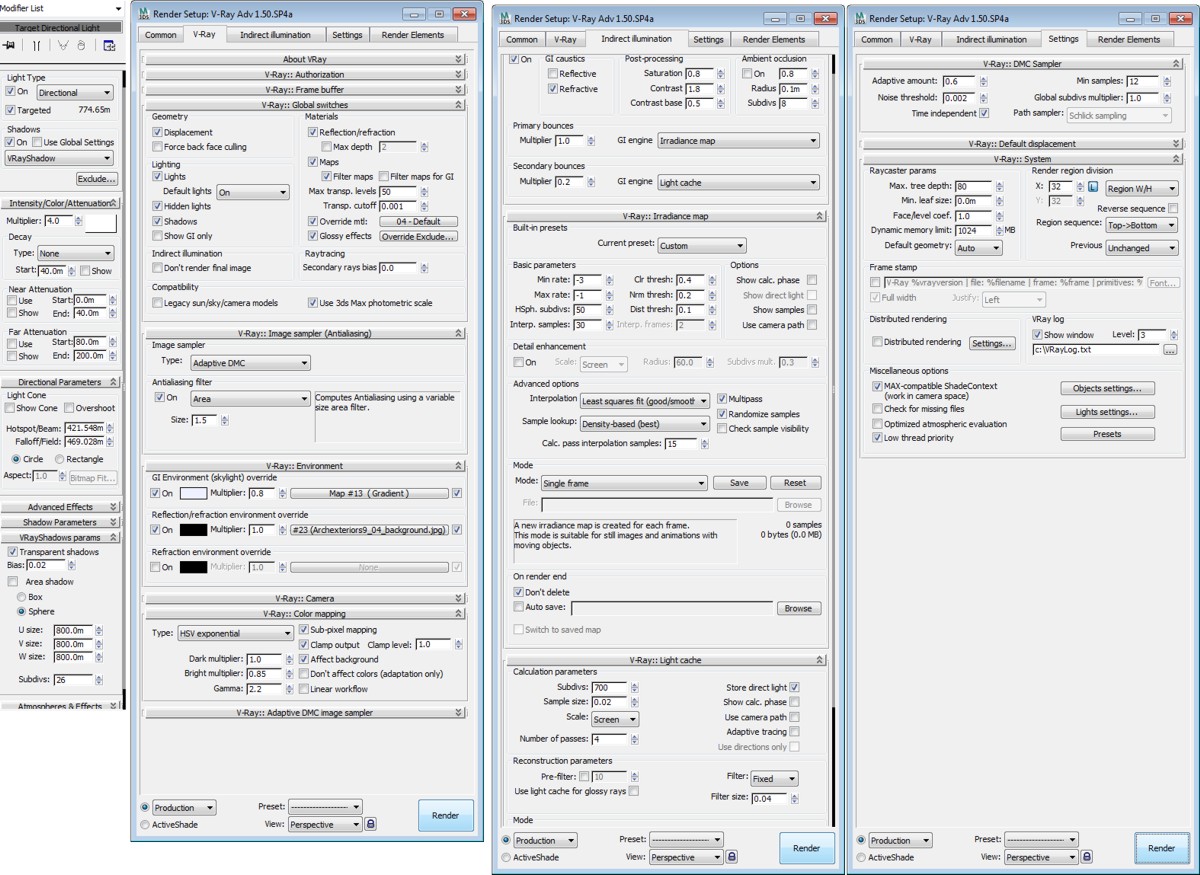 Y el asfalto, mejor quedaría con un Bump o desplazamiento, pero los tiempos aumentan expotencialmente :s, quizás no puedo intentar hacer una sola escena para x vistas, sino una escena por vista, así controlo más los polígonos, pero cuando te piden 5 renders, por decir algo, modelar 5 escenarios, o por lo menos ajustar parámetros en 5, es una burrada de tiempo ¿no? Un saludo.