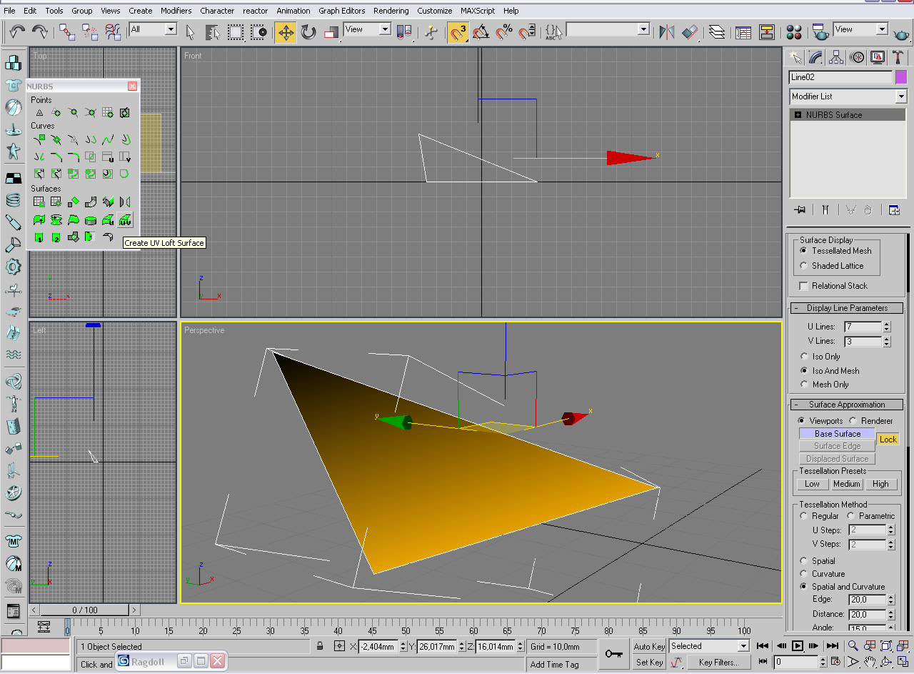 Buenas noches. Espero explicarme rápidamente para robar el mínimo tiempo posible. Os pido ayuda porque al renderizar una superficie Nurbs en 3d Studio, ésta no aparece en el render. Es una superficie realizada con la opción create UV Loft surface.