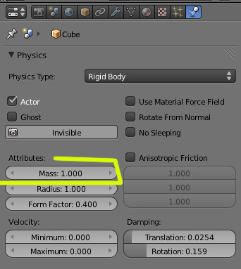 Normalmente los valores físicas son los correctos, en Blender game se le aplican los valores de 9.810 que es la gravedad normal de los objetos, de todas formas, puedes variar el valor de masa aplicándole una masa superior o inferior.