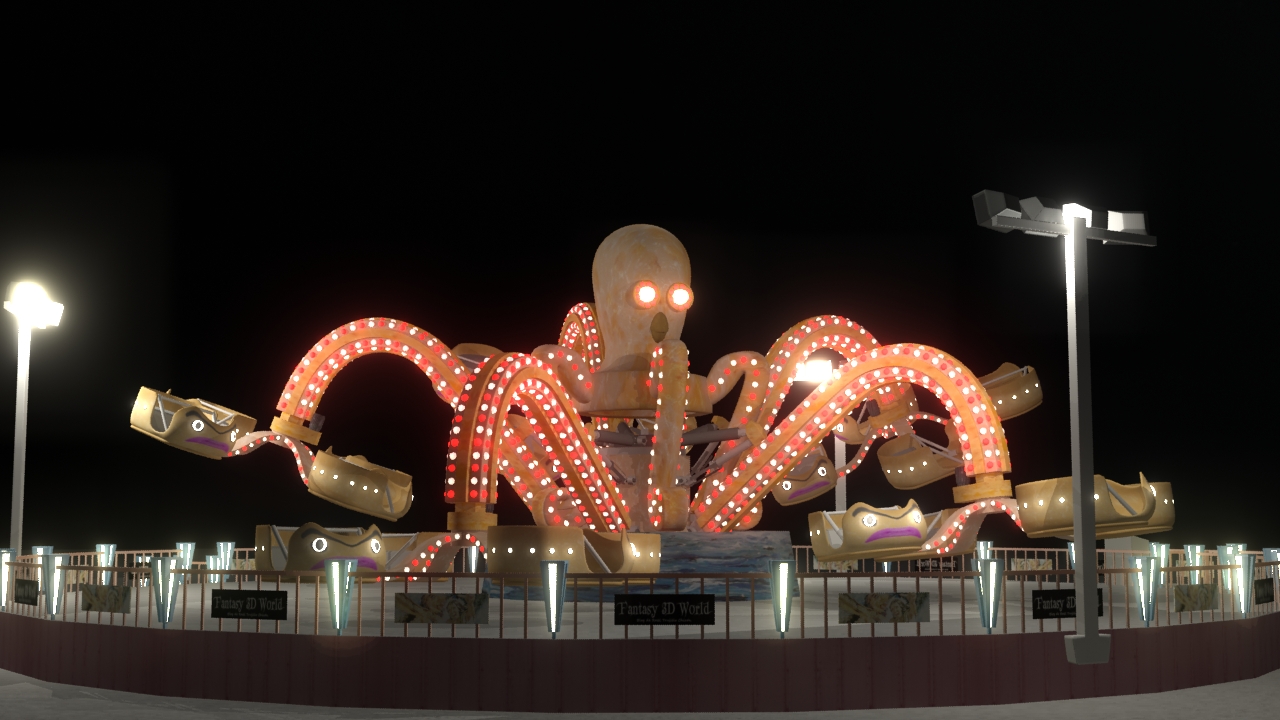 Lo que estoy haciendo es modelar todo por partes y luego juntarlo todo y texturizar, por ahora tengo modelado varias atracciones y diferentes partes del escenario.