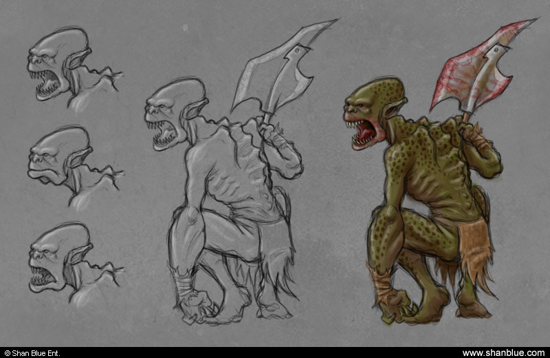 Me gustan mucho todos los concepts. De acuerdo con los comentarios de los compañeros, y añadiría que la mandíbula del ¿orco? Cuando esta abierta no se corresponde con sus dimensiones cuando esta cerrada.