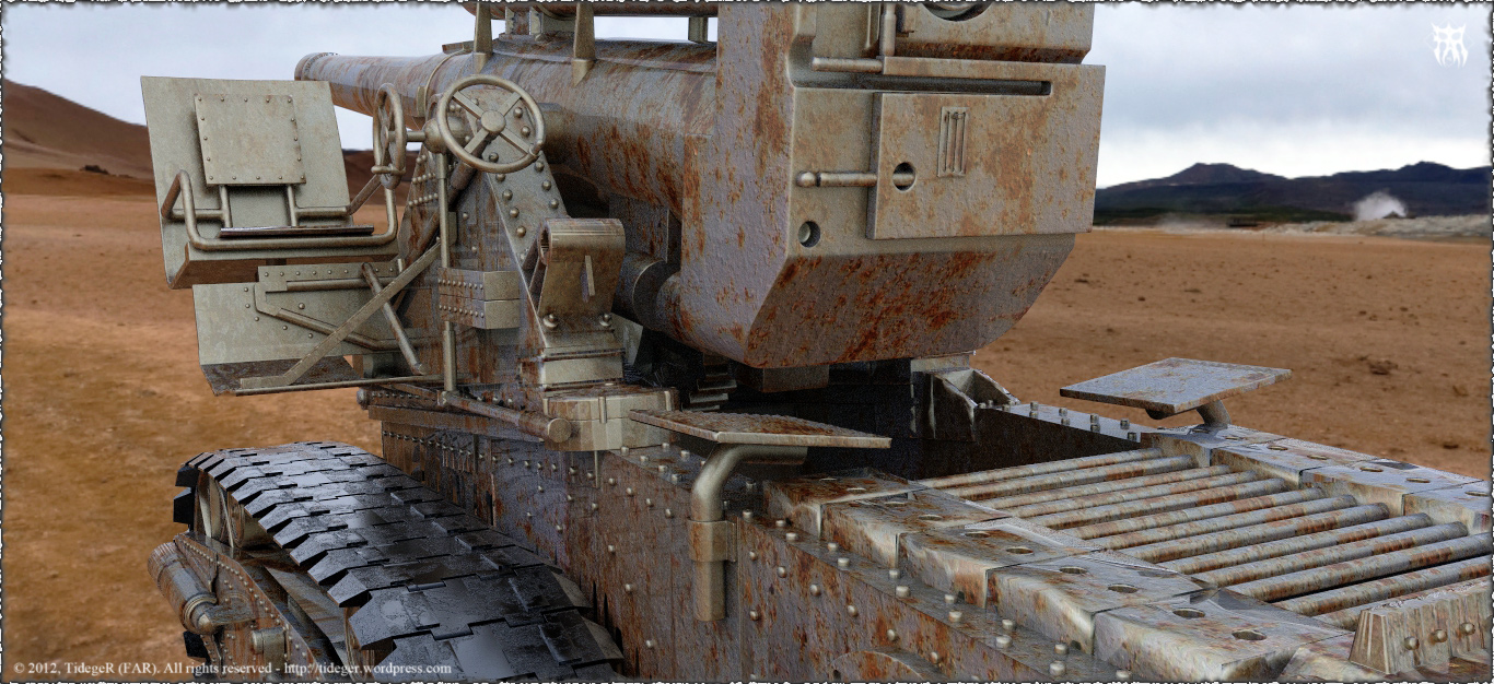 Se ve muy bien tideger, lo único como te han comentado, pues lo del tema de reflexión del metal que le quita realismo a la escena, por otra parte, no me gusta esa oruga puesto que parece que tiene una forma elíptica y da la sensación de que el vehículo no tenga peso alguno. Pero tampoco conozco ese tanque (si es que lo es) así que, no sé si realmente era así ese modelo o no. Un saludo.