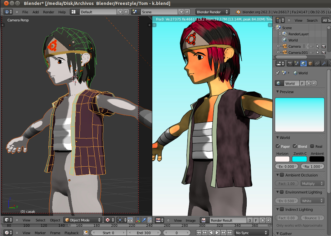 Tom-k (personaje anime) plataforma Linux- Blender 2.62 & Freestyle.