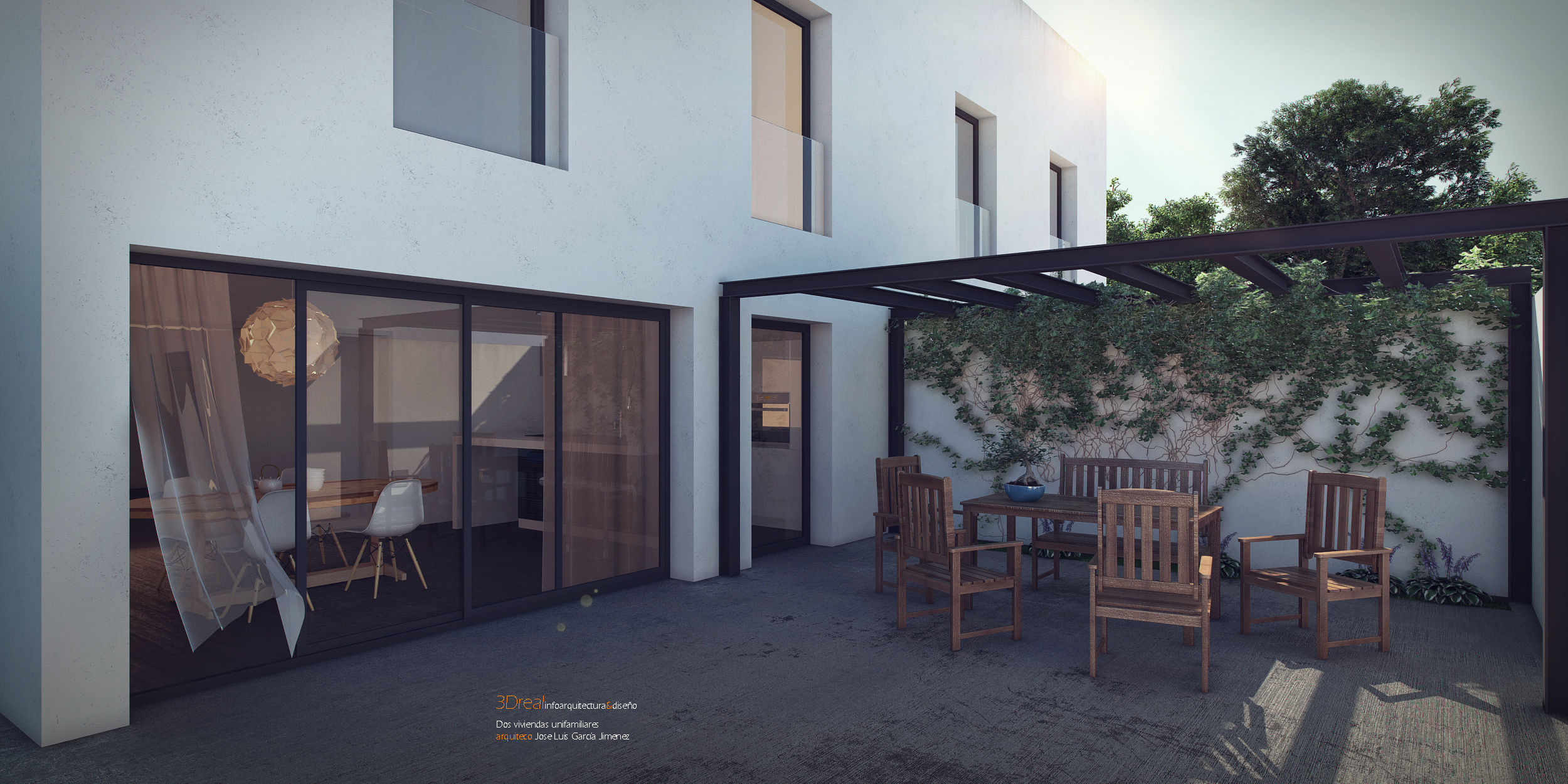 Hola muy buenas a todos, os muestro las imágenes del último trabajo realizado para la visualización de 2 viviendas unifamiliares en granada (España), del arquitecto José Luis García Jiménez.