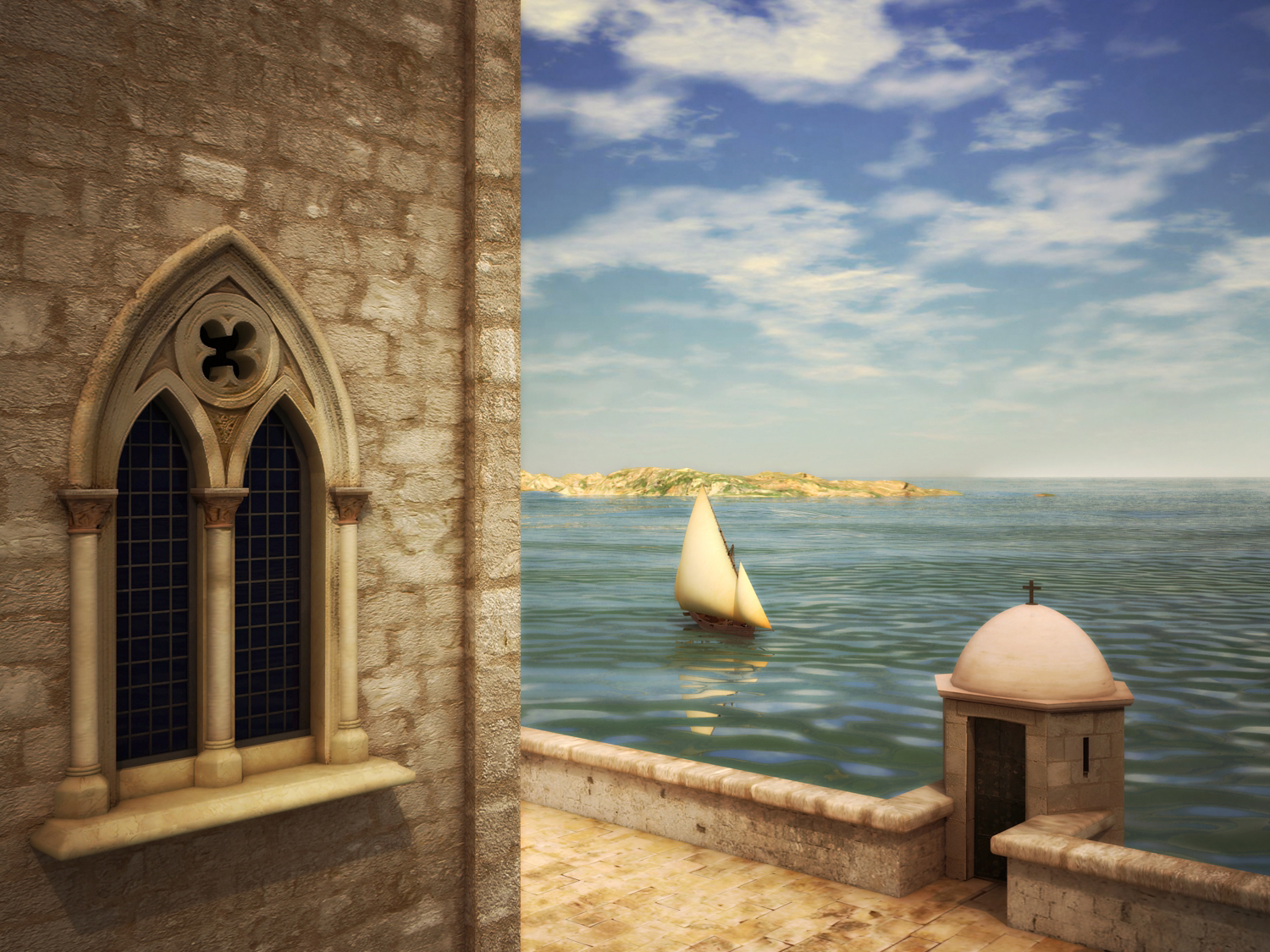 Hola, aquí les muestro una escena sencilla (si es que en esto del 3d hay algo sencillo). Desde hace algún tiempo quería hacer algo marítimo pero no se me ocurría nada interesante hasta que estuve visitando el castillo de peñíscola (lo cual les aconsejo si pasan por aquí cerca).