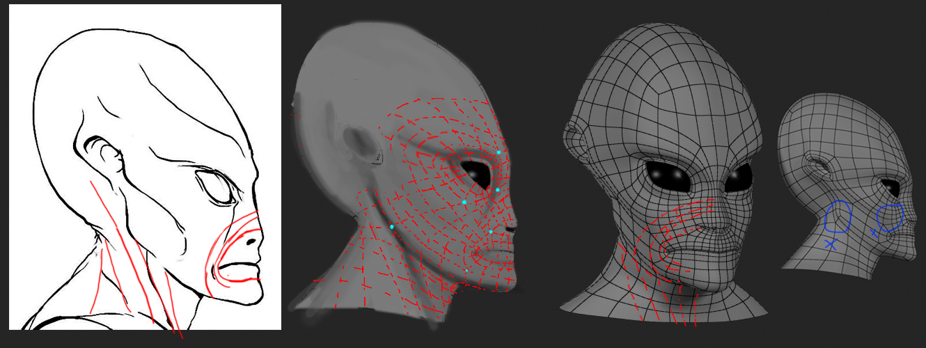 Aquí muestro el concept y el wire de la cabeza. Saludos.
