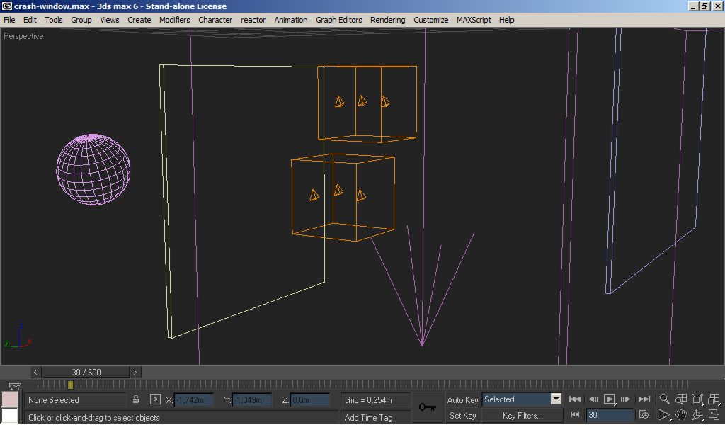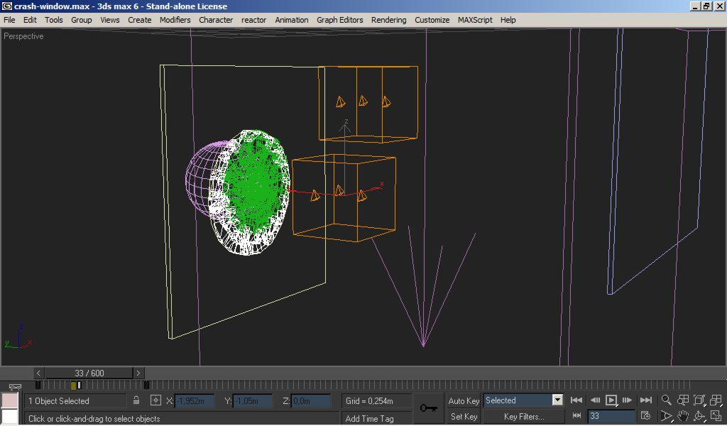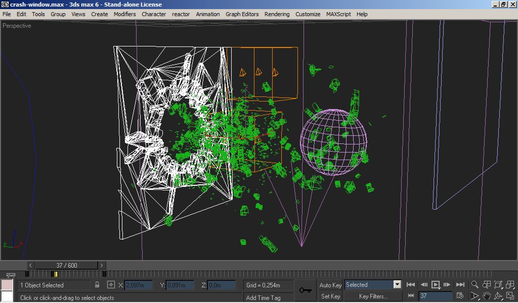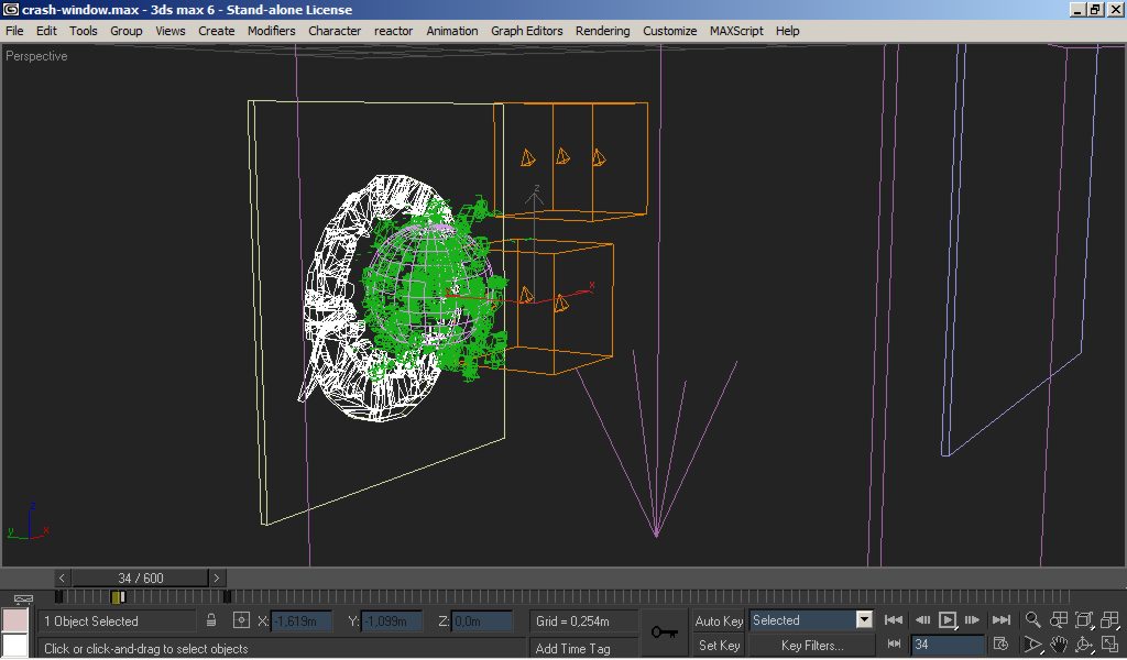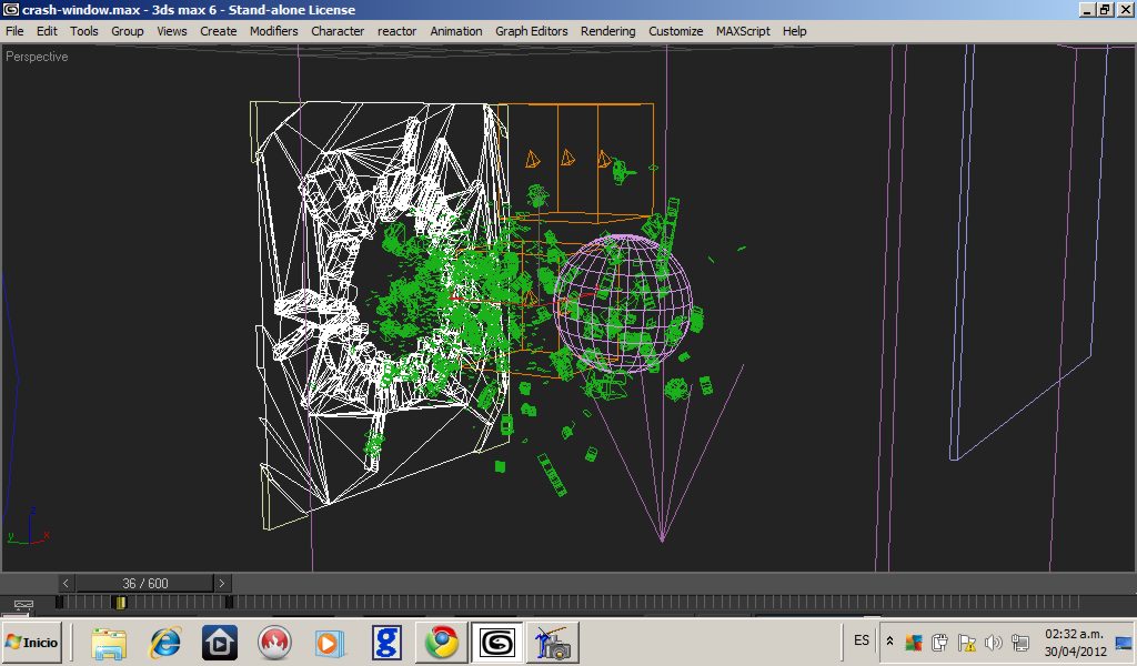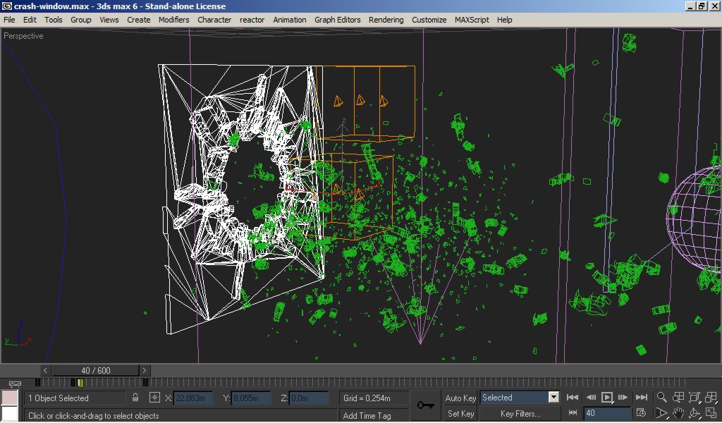 Y una rotura de vidrio por el impacto de una naranja, realizado exclusivamente con partículas standard de max8 (particle system).