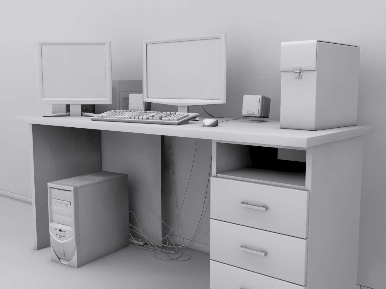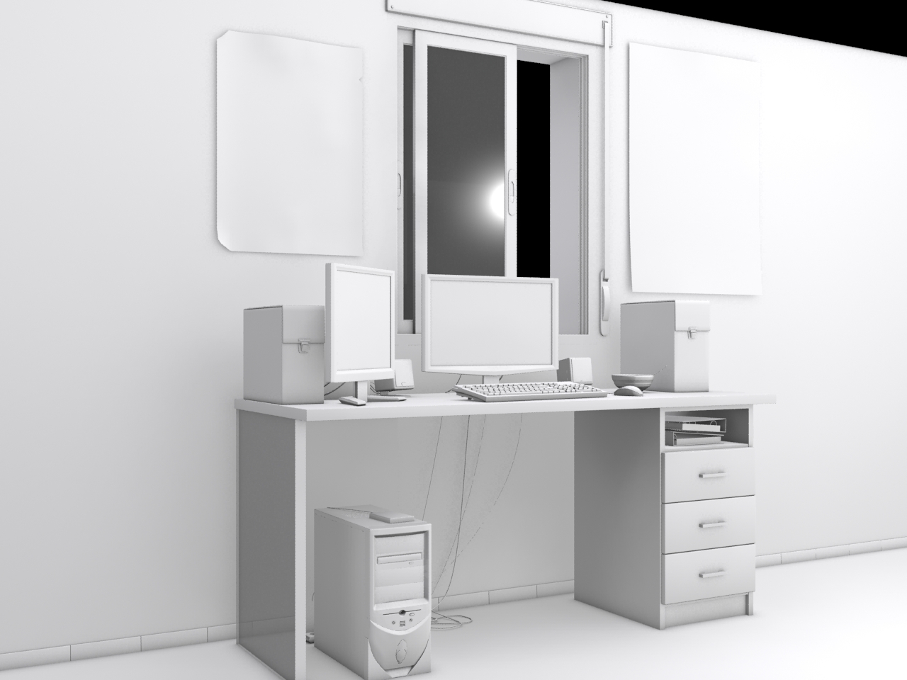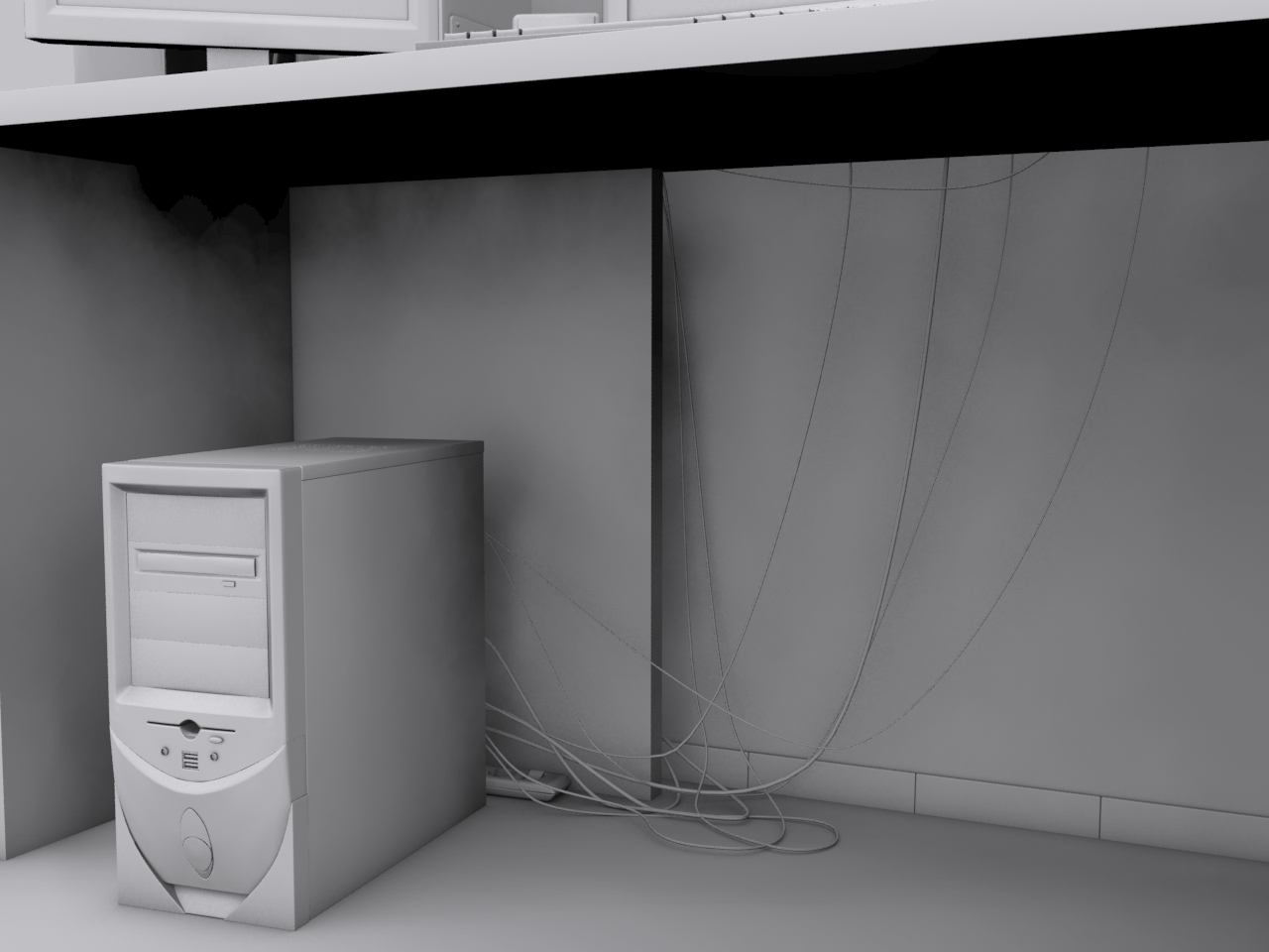 Y me dije, pues voy a hacerlo en 3d. Y ala, empecé ayer, y hoy tengo echa una buena cantidad de geometría modelada. La cantidad de polys es muy elebada (sobre 170.000), pero en objetos como el teclado, se puede mejorar. Además, como veis, la cantidad de detalles es bastante elevada en todas partes. ¿decidme, que opináis? Luego subo unos wires, pero temo que podáis decirme. La idea es hacerlo en plan fotorrealista, para aprender a usar el Mental Ray de una vez.-- IMÁGENES ADJUNTAS --
