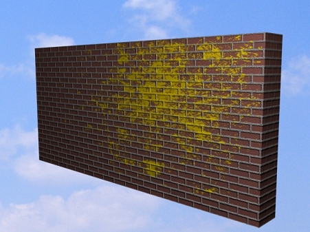 Para nuestros ejemplos vamos a basarnos en objeto 3d. Un muro de ladrillo. Es obvio que tendremos preparados tanto el mapa de ladrillo, como el de la mancha, en cuanto a las manchas, recordar que en cuestión de mapas, el color negro no existe para 3ds Max. El negro lo considera transparente.