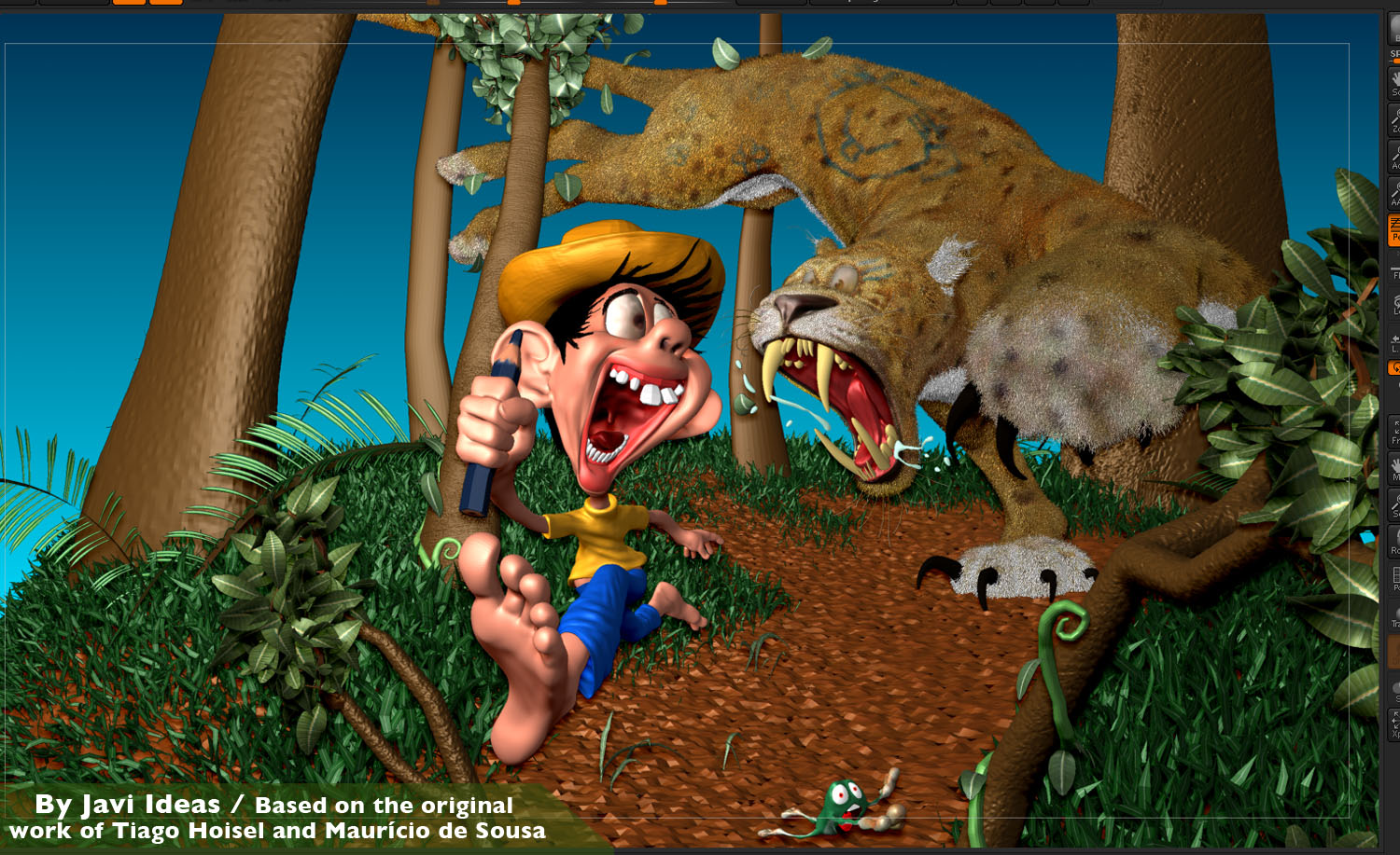 This is my personal 3d adaption of tiago hoisels chico bento illustration. You can se the original work by him in his cgsociety portfolio or in his blogspot site hope he likes it, y really enjoyed doing this and i learned a lot.