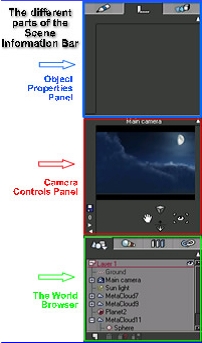 You Will a los notice that if you make the scene información bar todo big, the preview panel Will reposition itself todo the top of the screen, along side the properties panel and expanding the world browser upwards.