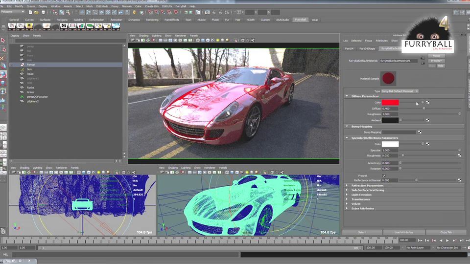 A Studio ha puesto en el mercado su última versión del furryball para Maya 2010, 2011, 2012, 2013 tanto para máquinas de 32 como de 64 bit, algunas de las mejoras más destacadas es su aumento de velocidad con respecto a versiones anteriores, iluminación indirecta, luces de área, soporte de mallas que emiten luz, nuevas pinturas con sobras para coche, materiales de dibujos animados y Anisotropic y soporte para partículas de Maya incluyendo shadow casting.