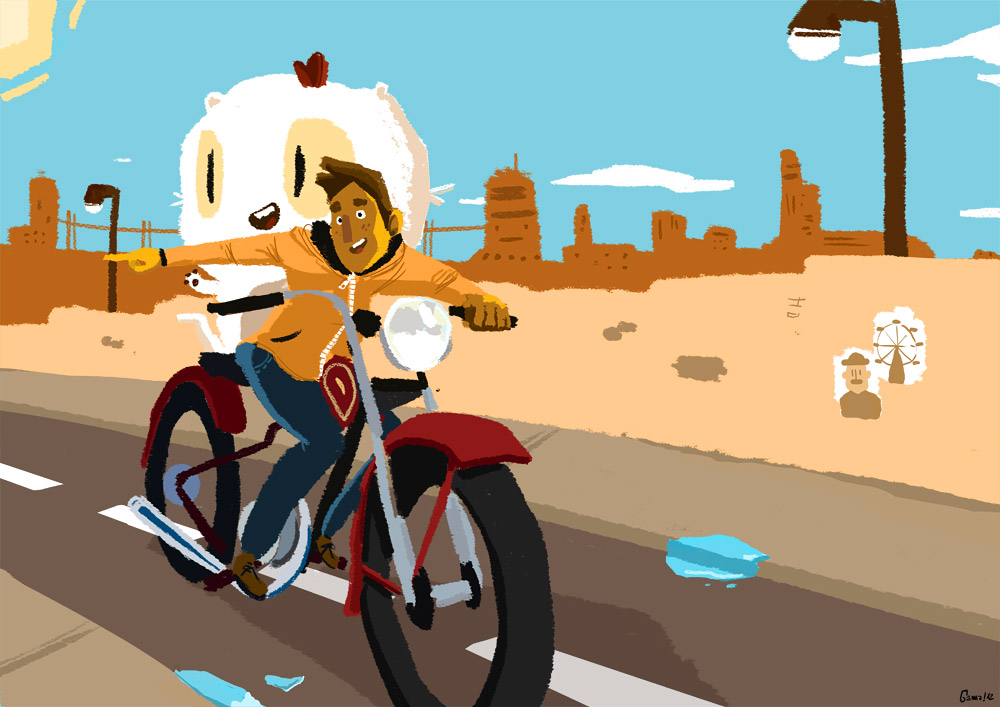 Eso es. Ojalá supiese animación 2d, pero me da que antes me pondría a aprender en 3d que tiene menos curro. Aquí podéis ver el making of. http://www.jongama.com/ilustración/motorcycle/.