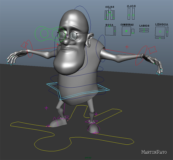 Bueno primer mensaje en el foro. Este personaje que ha falta de creatividad lo llame el viejo lo hice en un curso de Maya el año pasado. También vimos en el curso una introducción a las shapes y el rigging.