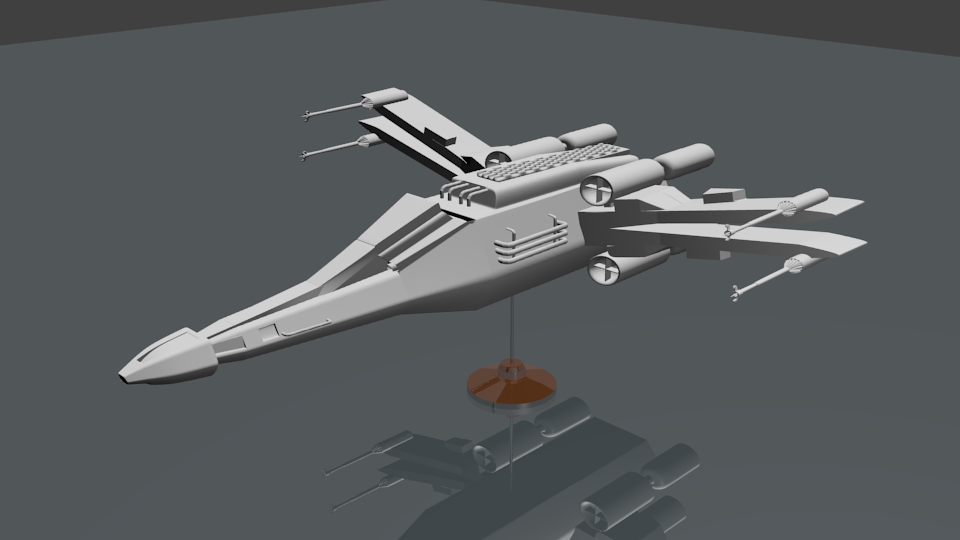 Muy buenas de nuevo. Cuelgo unas imágenes de un x Wings improvisado y con múltiples elementos inventados, ya que aún me cuestan algunos otros, es el segundo elemento que modelo en toda mi vida con un programa 3d.