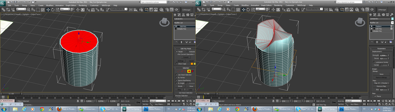 - selecciona con Edit Poly las caras que quieres que tengan desplazamiento.