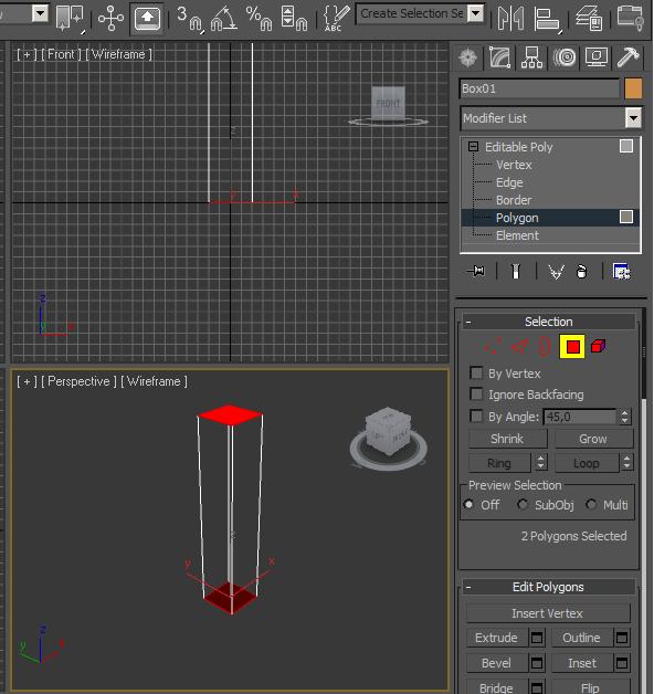 3.- Como los polígonos de ambos extremos (tapas) no se verán, selecciónalos y dale a Supr o del de tu teclado, ya que quedarán uno con el suelo y el otro en el techo. Sale de modo polygon.