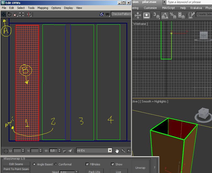 Disculpen si esta algo desordenado, quería responder lo antes posible al forero, el que quería mapear un box que había puesto en una escena como dos pilares, una especie de estacionamiento subterráneo usado para al parecer una fiesta o algo así. Saludos y que estén bien.
