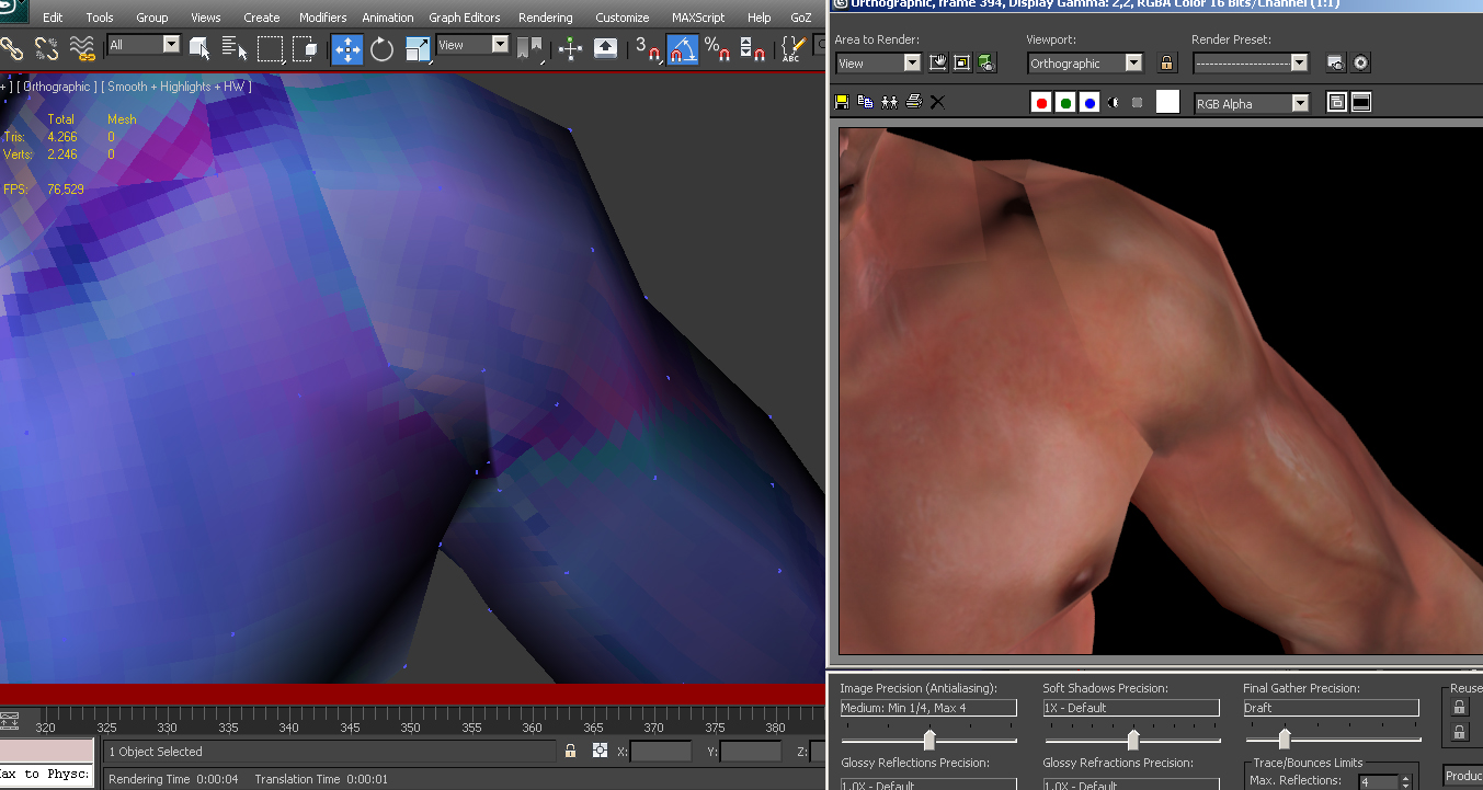 El caso es, que como muchos sabréis, al exportar el mapa de normales en ZBrush, no coinciden correctamente los colores en los bordes de las islas de las UV, por lo que se nota un cambio brusco entre unas y otras. Por ejemplo,: