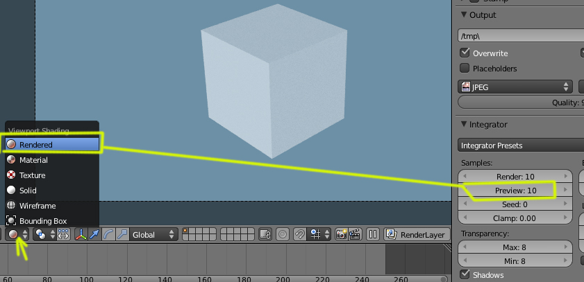 No he visto el video, pero te explico, las dos formas que estamos comentando, la primera es para ver el render en el visor 3d (es la llamada rendered)