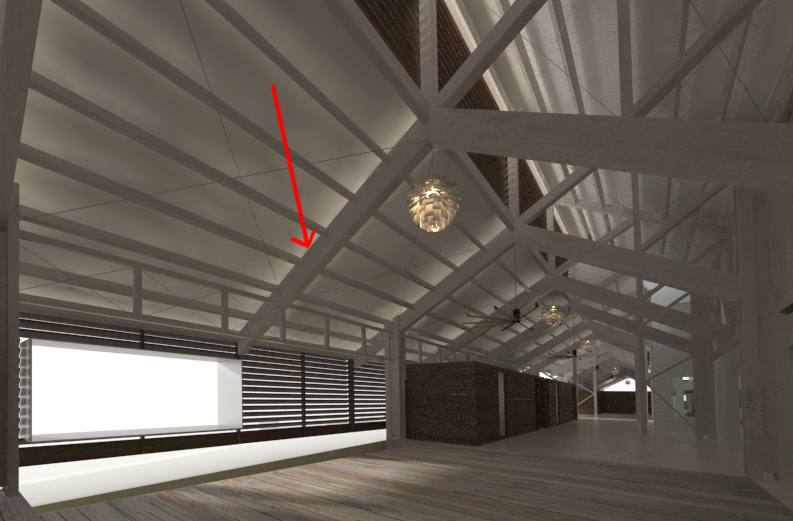 Tengo problemas con esta zona la cubierta y las vigas están muy próximas. No me gusta este resplandor que aparece, alguna idea de cómo quitarlo.