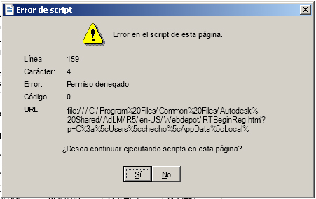 Si no te da ningún problema más, es decir, no te impide continuar el registro, por que es una ventana final a este, no le des importancia, si es una ventana anterior, que te impide continuarlo, puedes tener problemas de permiso de escritura de administrador, que el archivo que se quiere abrir no este en la ruta correcta, o un problema de configuración de seguridad en internet explorer, demasiadas restricciones o bloqueo de ejecución de scripts, antivirus o antipopup instalados, esto pasa al abrir la ventana de adlm donde aparece la configuración de licencia de usuario. Suelen ser un archivos xml que se encuentra en la carpeta adlm en w7 en la ruta c:\users\(tu usuario local)\appdata\local\Autodesk\adlm a veces dependiendo de la configuración de seguridad con los scripts que tengamos en iExplorer se permite ejecutarlo o no, con la consiguiente ventana. Otras pasa también con el archivo ejemplo: 3dsmax2012en_usreginfo en c:\users\(tu usuario local)\appdata\local\Autodesk\3dsmax\2012 - 64bit\enu.