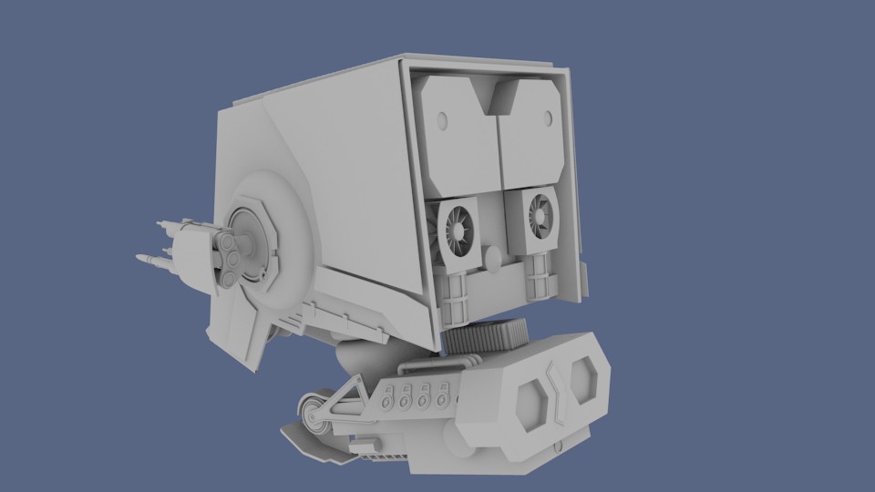 Hola a todos, os presento el último modelo que estoy haciendo, es un at-st de la guerra de las galaxias, es un modelo para un tutorial de modelado con Blender que estoy preparando. Espero que os guste.