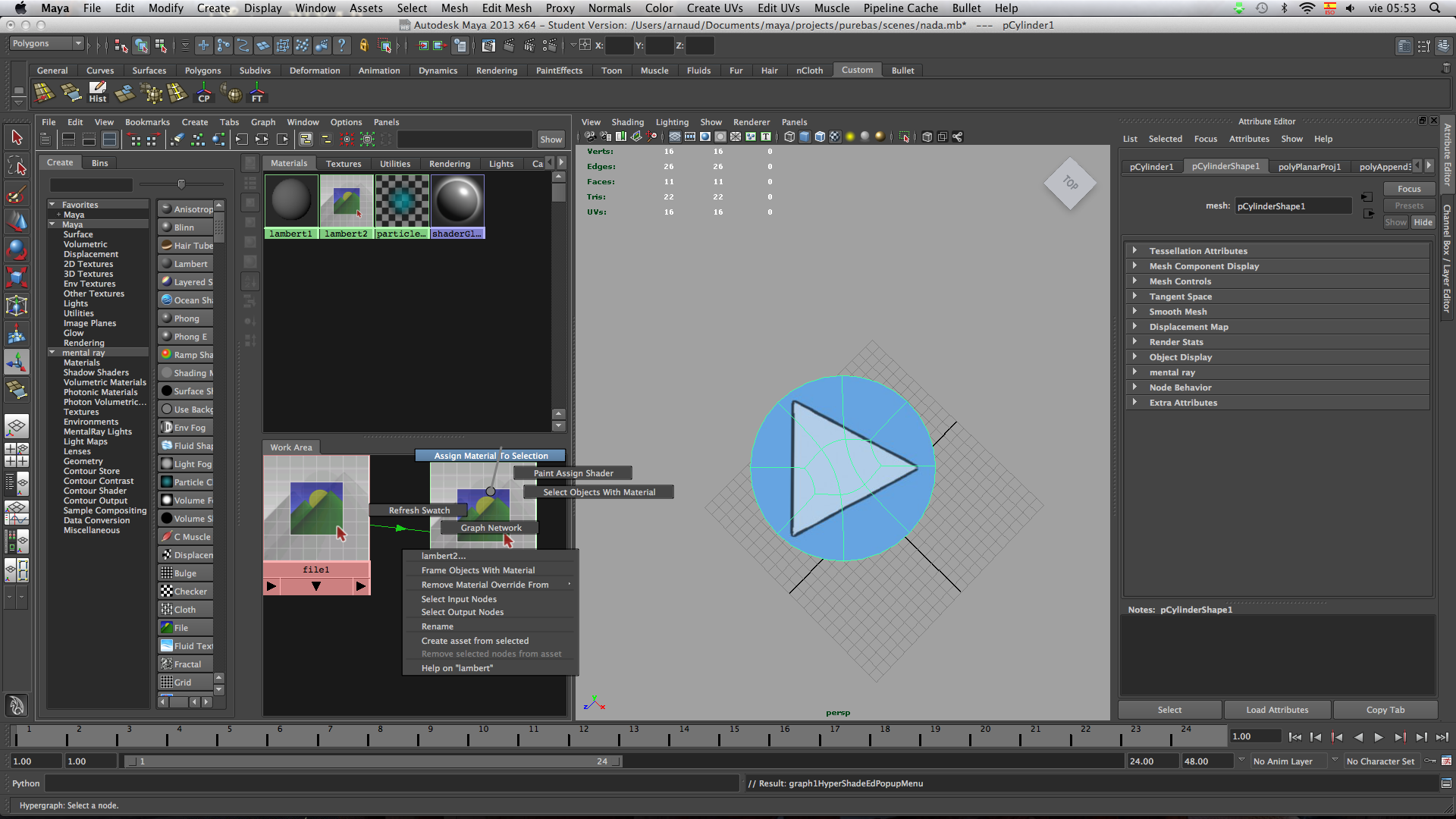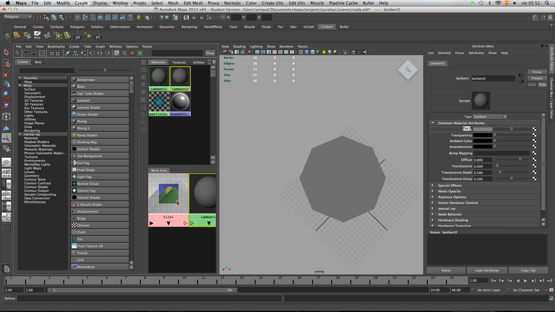 3- Metes las UVS en el nodo file, y lo arrastrar al color de tu shader, Lambert Blinn etc.