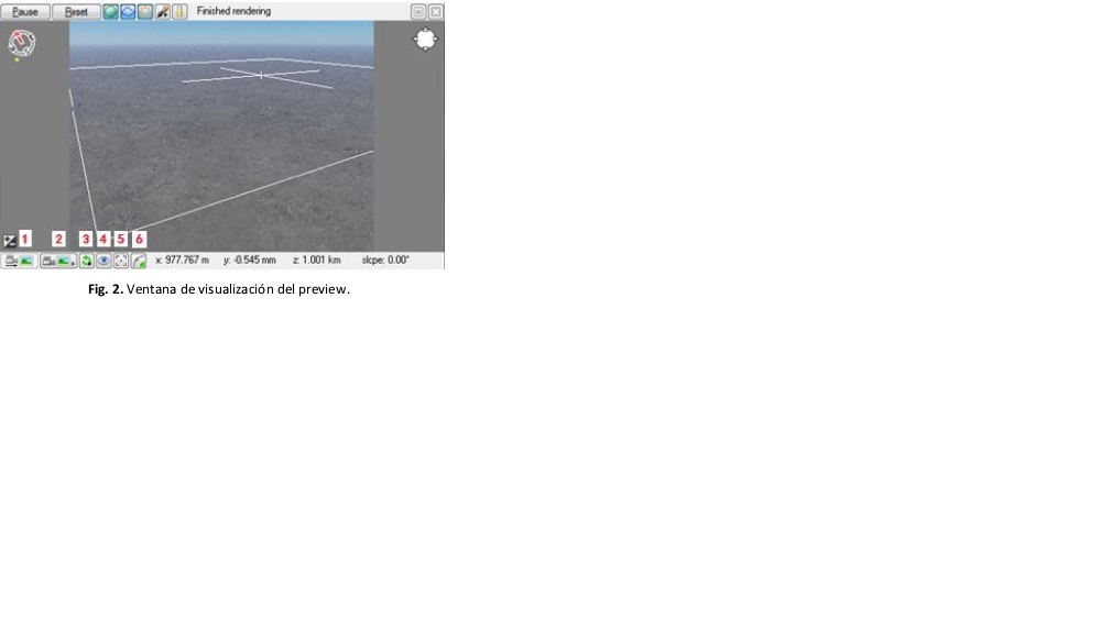 -Pause: cada vez que realizamos una modificación en nuestra escena, el programa trabaja para representar una vista previa, que nosotros podremos parar con este botón, si vemos que tarda demasiado. En realidad, este botón no tiene demasiada utilidad.