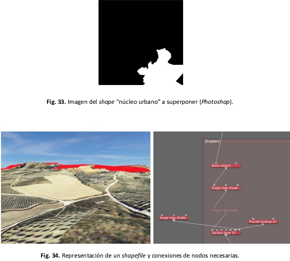 -Distribuiremos dos poblaciones arbóreas en nuestro terreno, cada una de las cuales ira asociada a una superficie, a través los nodos Paint Shader o image map shader, como ya se explicó en el apartado 11 objetos.