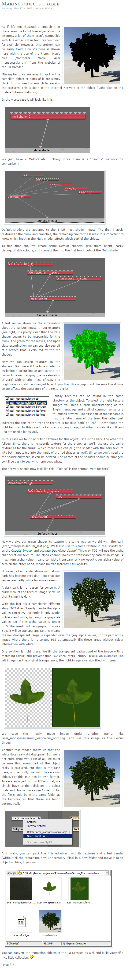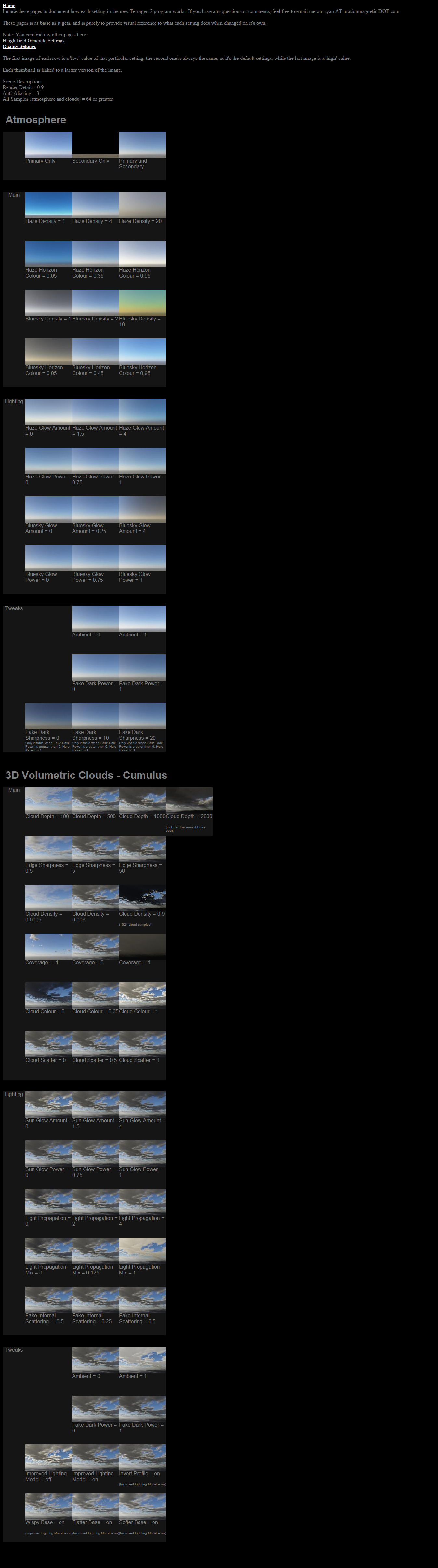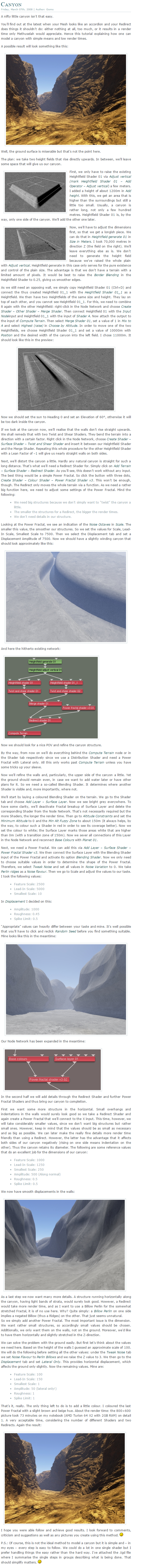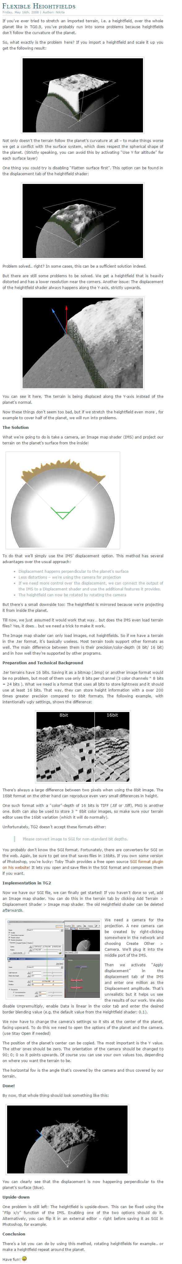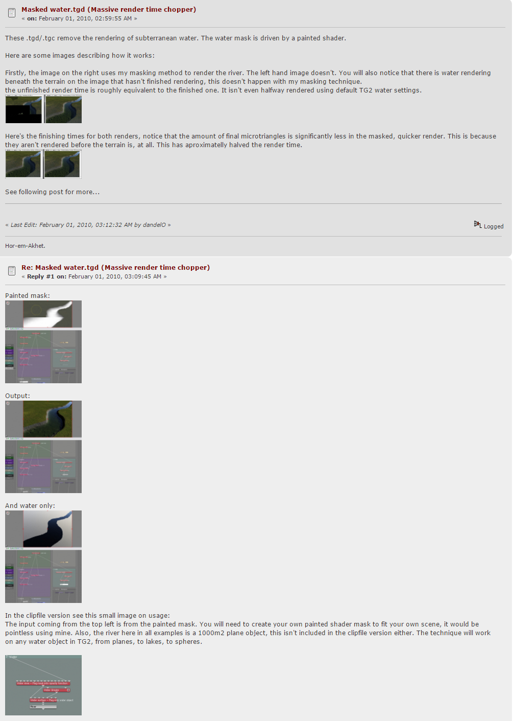 http://forums.planetside.co.uk/index.php?Topic=6432.0. http://en, tgblog.de/?p=27. http://forums.planetside.co.uk/index.php?Topic=8376.0 (efecto lava). http://forums.planetside.co.uk/index.php?Topic=7165.0 (efectos en rocas y turbulencias del agua).