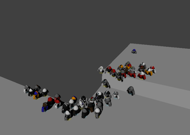 Bueno aquí van unas capturas de cómo va la cosa y en concreto la inteligencia artificial de combate y algunos tipos de armamento. El resto de la IA ya está también en un estado avanzado, pero esta parte es sin duda la más complicada de implementar y lo cierto es que va por muy buen camino. Respecto a otros aspectos, tenía pensado que el juego fuese en primera persona, pero al final me he decantado por que sea completamente en 3ª, igual añado alguna cámara en 1ª para observación, pero nada más.