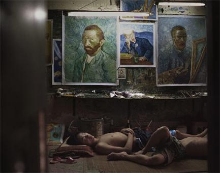 Y es que China esta aplicando al arte las mismas técnicas de manufactura que en otros campos como juguetes y electrodomésticos. La mayoría de las pinturas son creadas por grupos en los que cada pintor-trabajador se hace responsable de cierto conjunto de colores o pinturas copiados de la fotografía de un trabajo ya existente. Muchos son también producidos por una persona que pinta la misma obra una y otra vez.