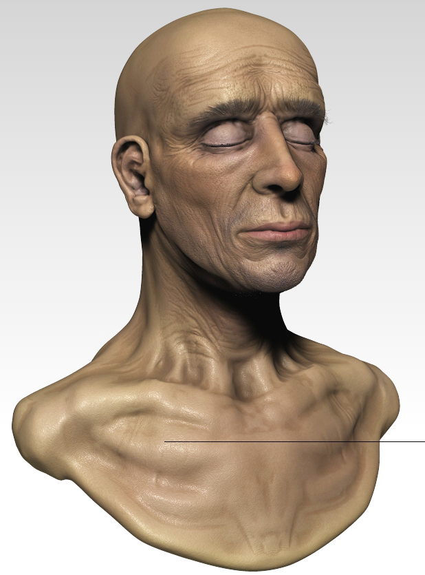 De momento tengo que tocar la boca, las arrugas de la frente, mejorar las orejas, el carrillo que tiene un poco descolgado y por supuesto todo lo referente a pelos que está muy basto. También tocar los colores un poco y los materiales para que no tenga el aspecto plasticoso, y ahora os toca.